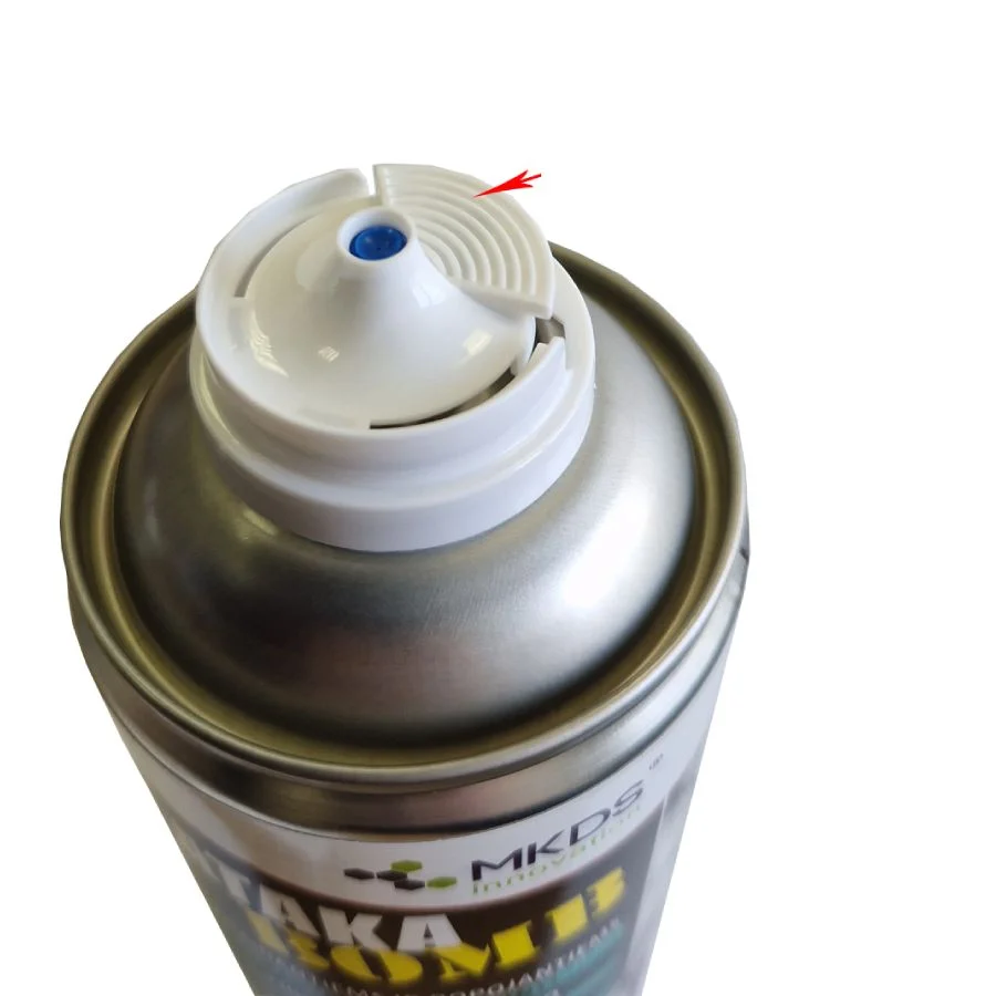- Aktiveerimine: Asetage pudel ruumi keskele põrandale (soovitavalt ajalehe peale). Vajutage aplikaatorit tugevalt, kuni see lukustub ja hakkab ise pihustama. Hoidke nägu eemal!