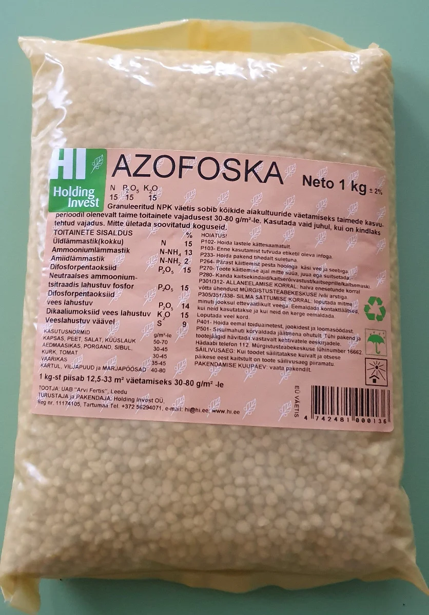 - Fosfor (P) tugevdab juuri: Ilma fosforita on juurestik nõrk. Azofoska tagab, et istikud juurduvad kindlalt ja suudavad mullast vett kätte saada ka kuivaperioodil.