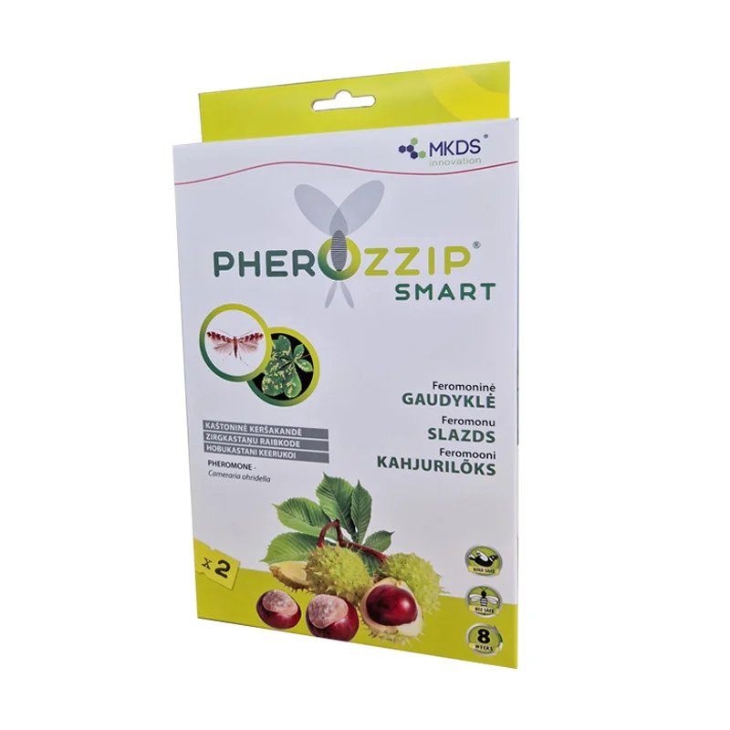 Hobukastani keerukoi muudab teie uhked kastanipuud juba kesksuvel pruuniks ja räsituks. Pherozzip SMART on uue põlvkonna valmislõks, mis sisaldab nii feromooni kui liimpinda — te ei pea enam eraldi lõksukorpust ostma. Pakendis on 2 lõksu, mis on koheselt kasutamisvalmis. See on kõige lihtsam viis oma kastanipuud kaitsta ilma keemiata.